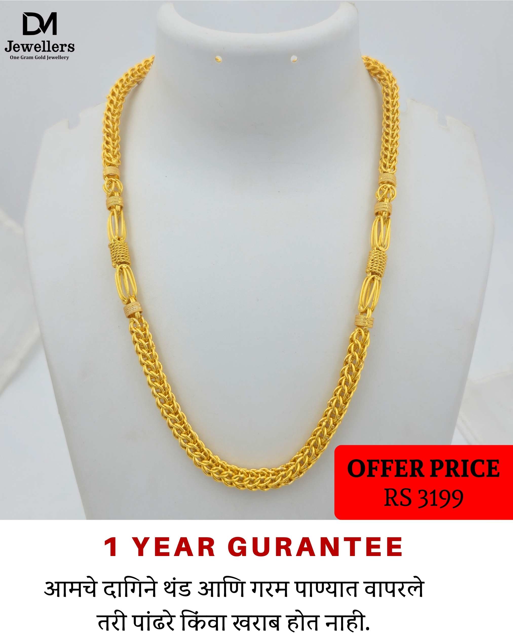 DM Jewelers Men’s Chain | 1 Gram Gold Plated Chain | 1 Year Guarantee