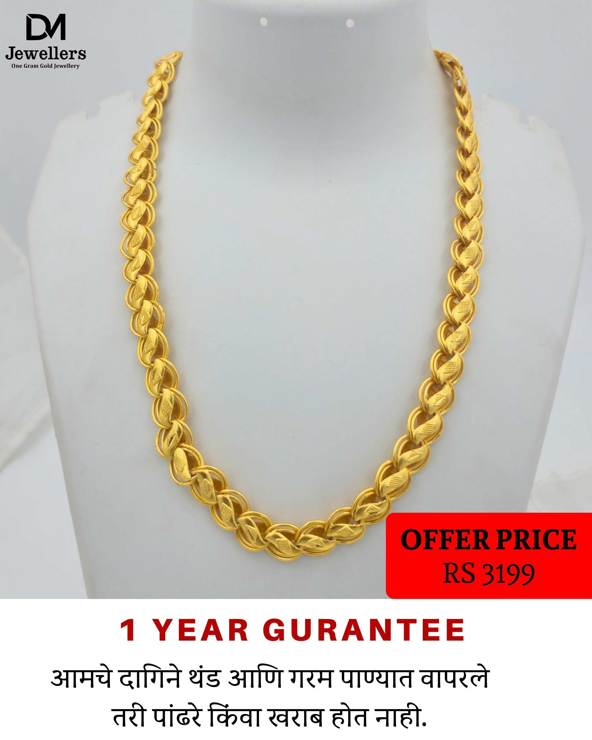DM Jewelers Men’s Chain | 1 Gram Gold Plated Chain | 1 Year Guarantee