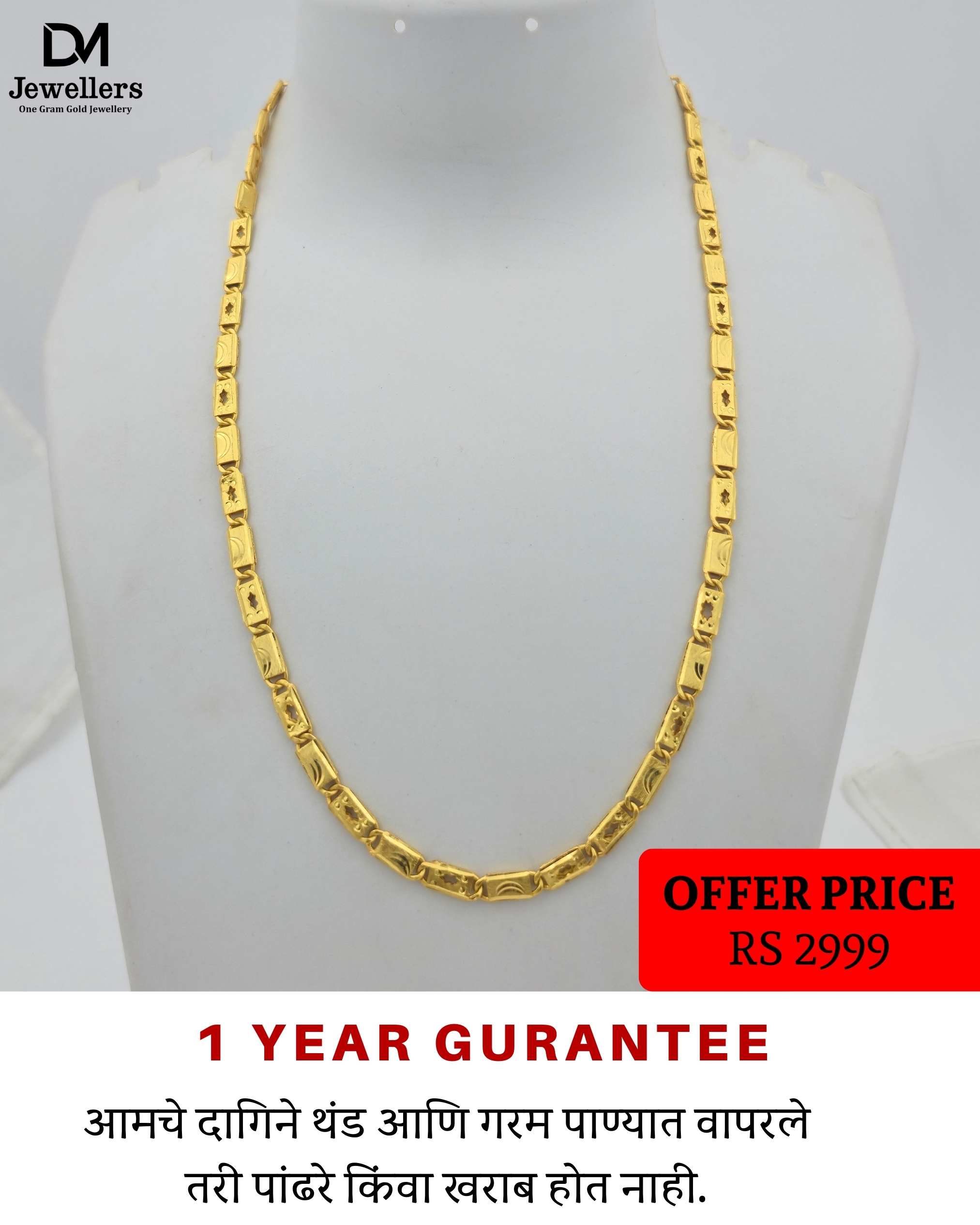 DM Jewelers Men’s Chain | 1 Gram Gold Plated Chain | 1 Year Guarantee