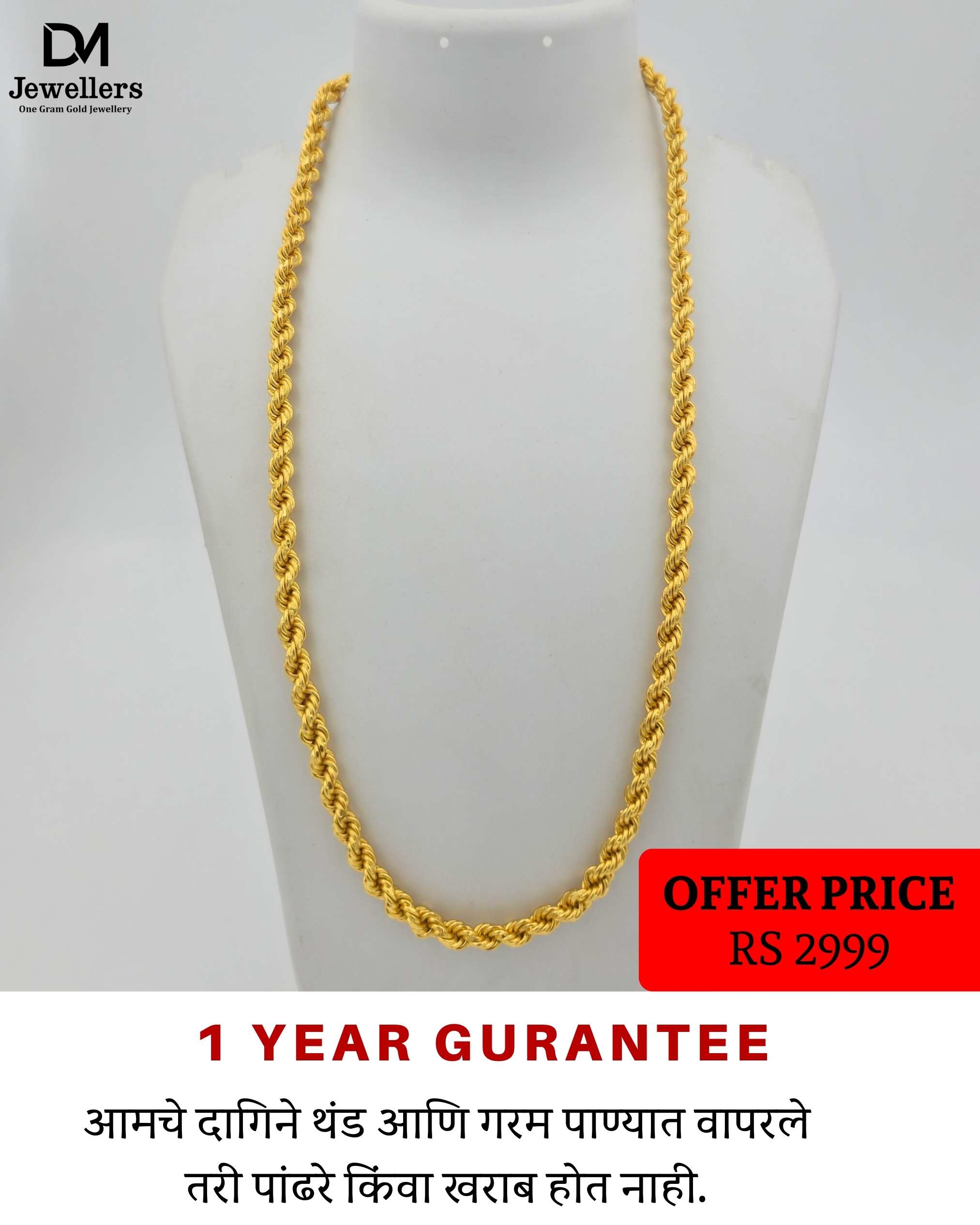 DM Jewelers Men’s Chain | 1 Gram Gold Plated Chain | 1 Year Guarantee